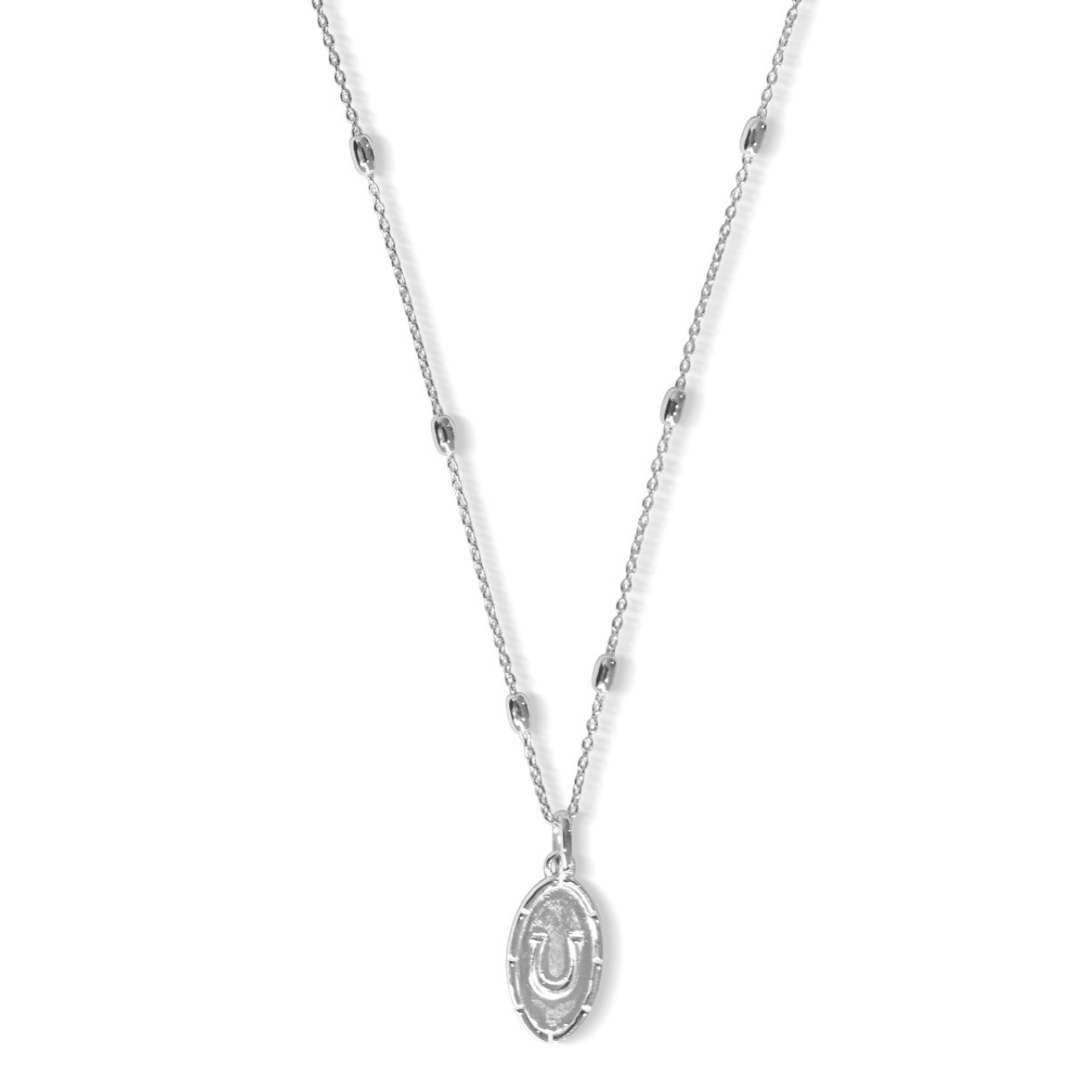 Embrace a touch of everyday luck with the Breeze Oval Horseshoe Necklace. Crafted in sterling silver, this elegant pendant features a classic horseshoe emblem set within a sleek oval medallion. The 45cm chain with a 5cm extender lets you style it your way — perfect for layering or wearing solo. Simple, meaningful, and timeless, it’s a piece you’ll reach for again and again.