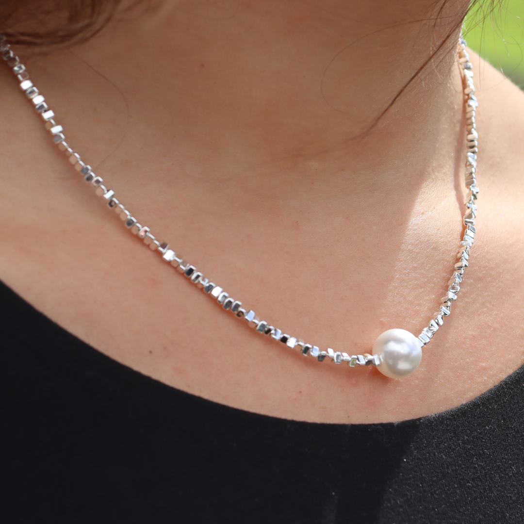 The perfect addition this season! This stunning necklace features the lustrous white freshwater pearl at its heart, surrounded by sophisticated sterling silver-plated hematite stones. Measuring 45cm with a convenient 5cm extender chain, it offers the perfect fit for any occasion and neckline. The sleek hematite stones add contemporary edge while the pearl brings timeless grace—a combination that works beautifully on its own or paired with our matching bracelet for a coordinated, polished look.
