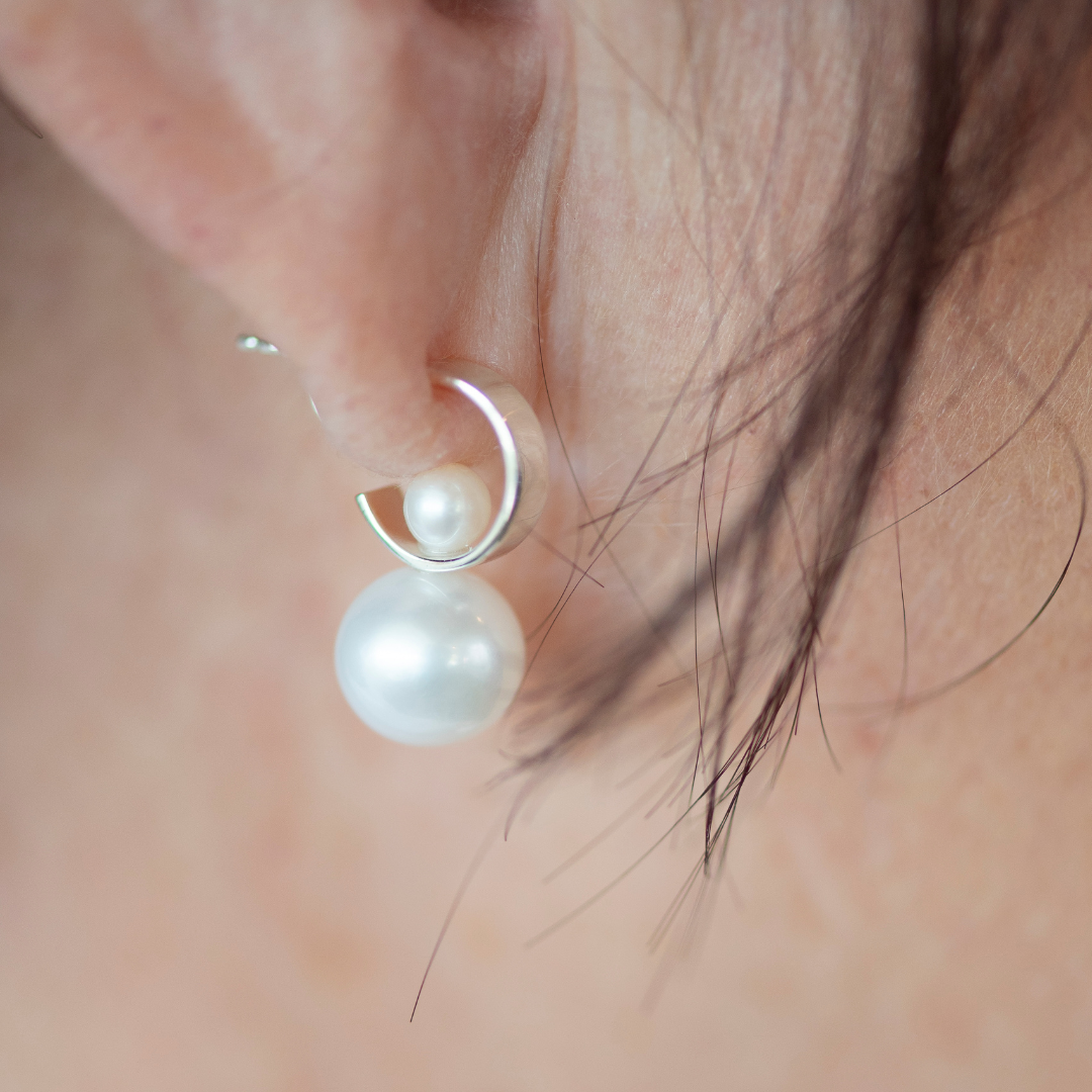Elevate your style with these Silver Perle Double Fresh Water Pearl Stud Earrings. Crafted from stunning sterling silver and two shimmering freshwater pearls.