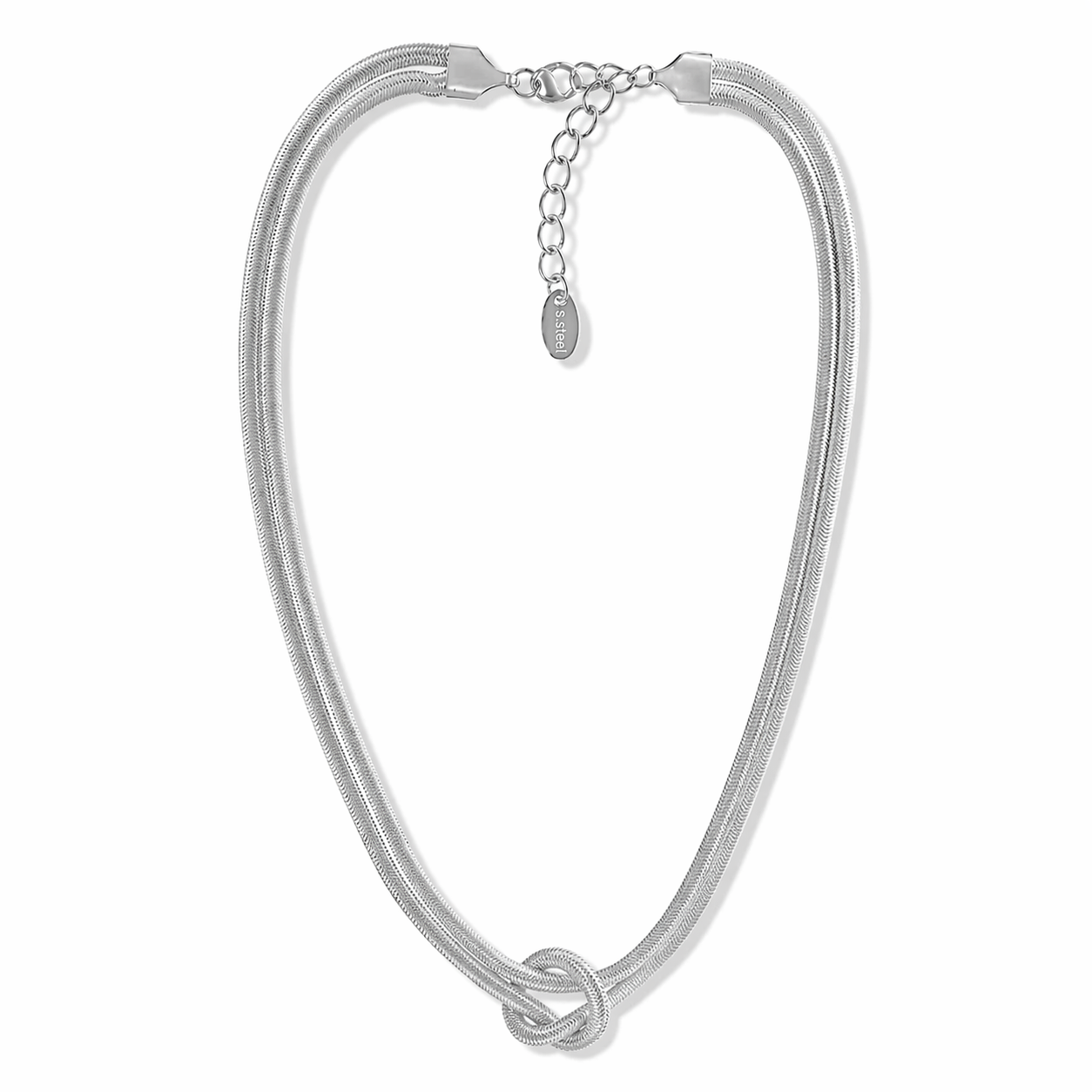 Discover the perfect blend of modern and classic with our Steel Me Silver Double Snake Chain Knot Necklace. The double snake chain with knot feature adds a unique touch, while the short style is designed to sit beautifully on your chest. With a length of 45cm and a 5cm extender chain, this necklace offers both style and versatility. The perfect addition to your jewellery box this season.